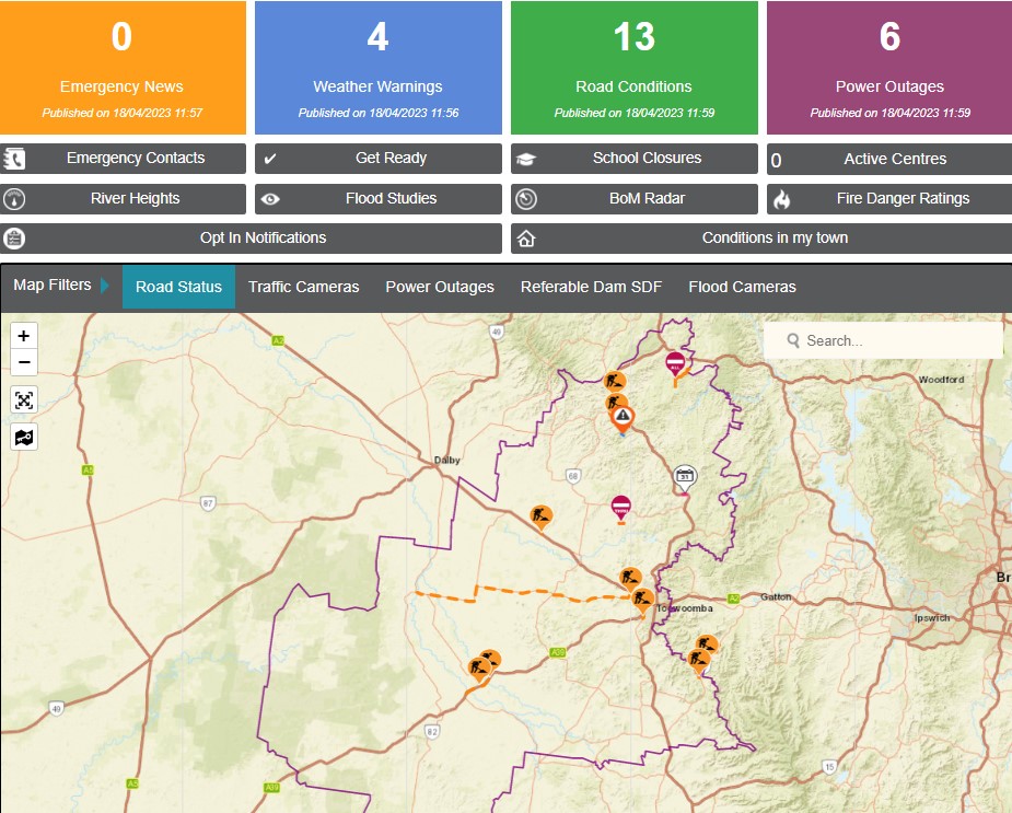 Toowoomba Region Disaster Dashboard is a key point for timely, accurate and confirmed information in times of disasters and emergencies Each of the coloured buttons at the top provide you with a...