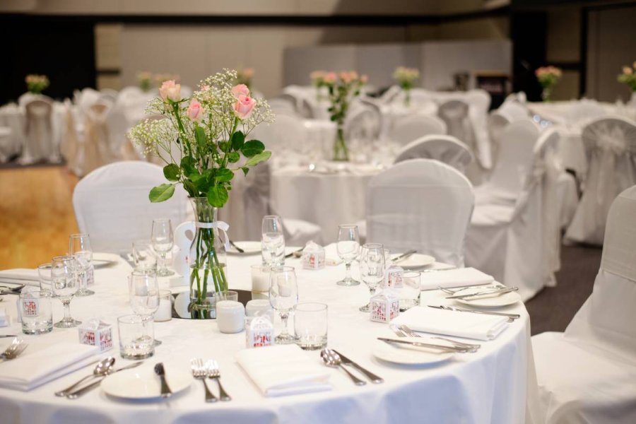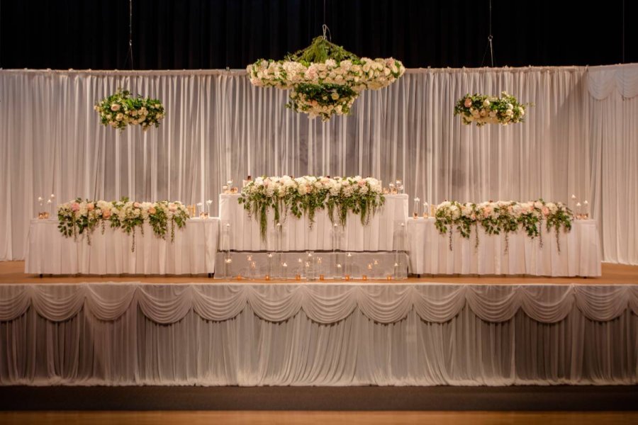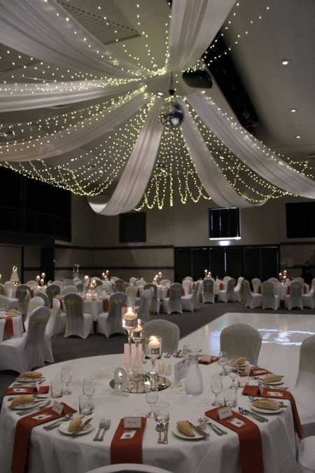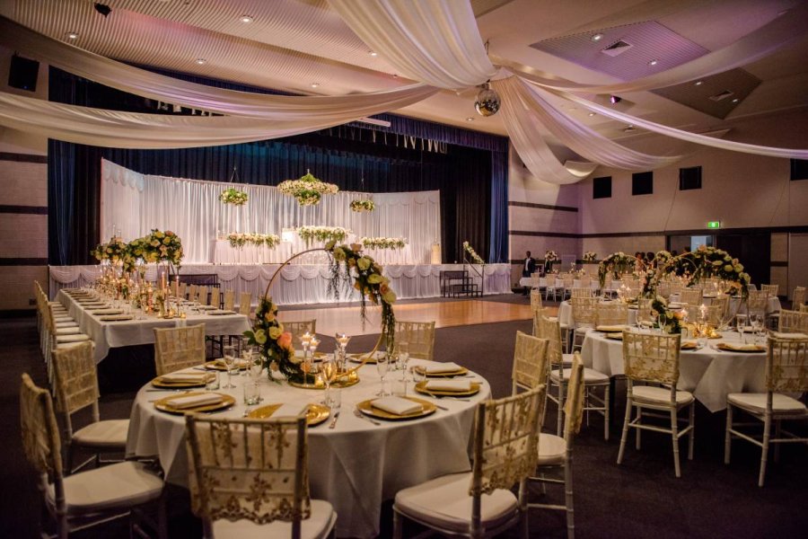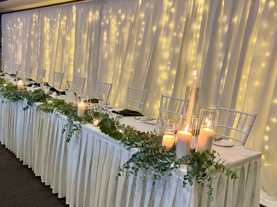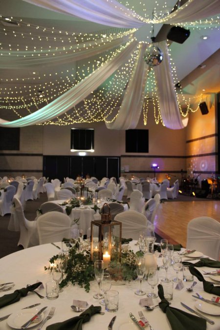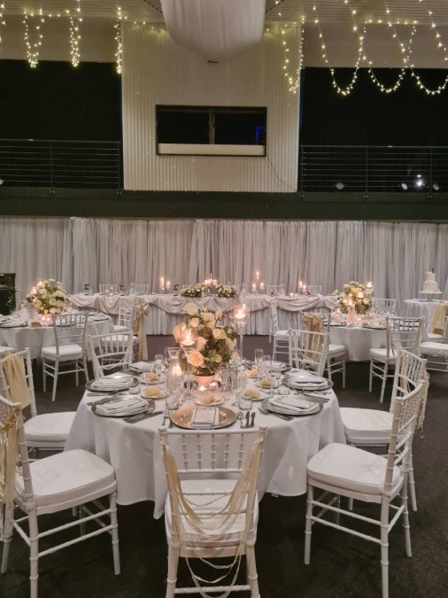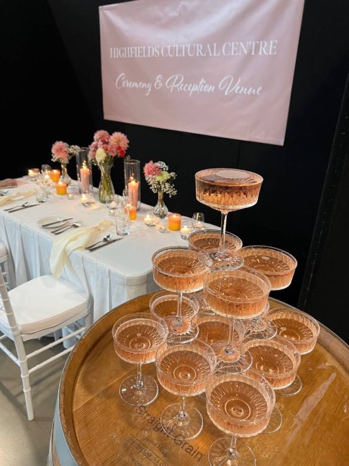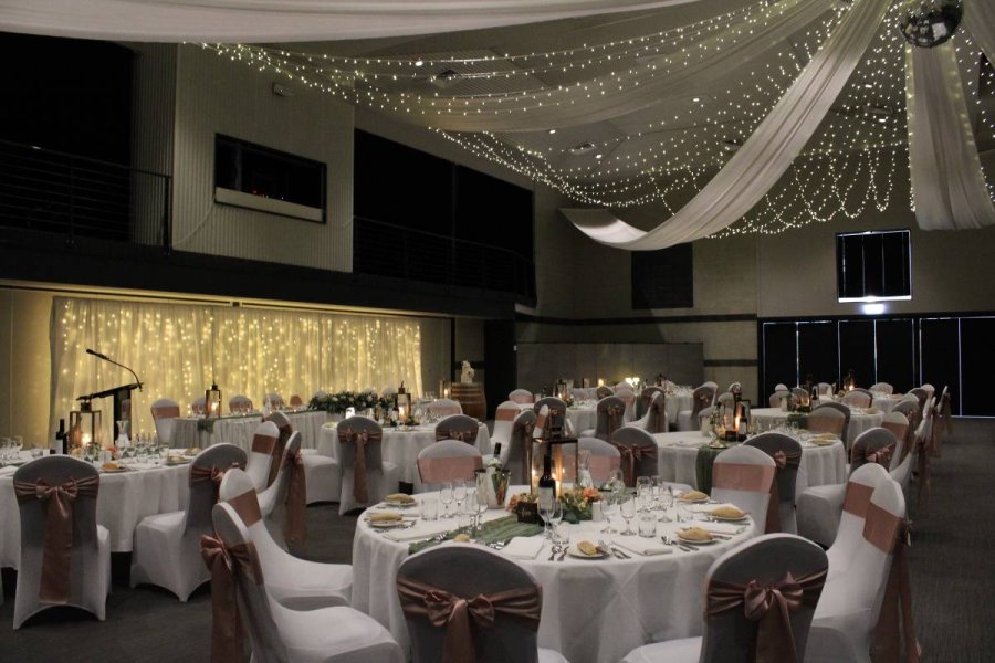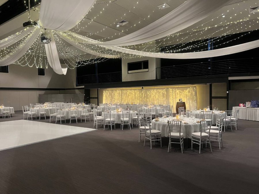 At Highfields Cultural Centre, we take care of all the details. You won't need to lift a finger, tables and chairs are set to your custom seating plan with white linen tablecloths and linen napkins, bridal table and cake table skirting, cutlery and glassware. Our experienced staff can also assist with decorating your wedding with chair covers, sashes, table centrepieces, bridal backdrops and ceiling drapery. We can even tailor our lighting to suit your colour scheme!