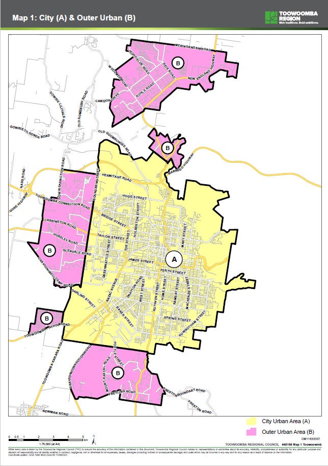 If you don't have your rates notice handy, you can find your location and corresponding area in the maps below. Then use this to find which category applies in the supplied tables.