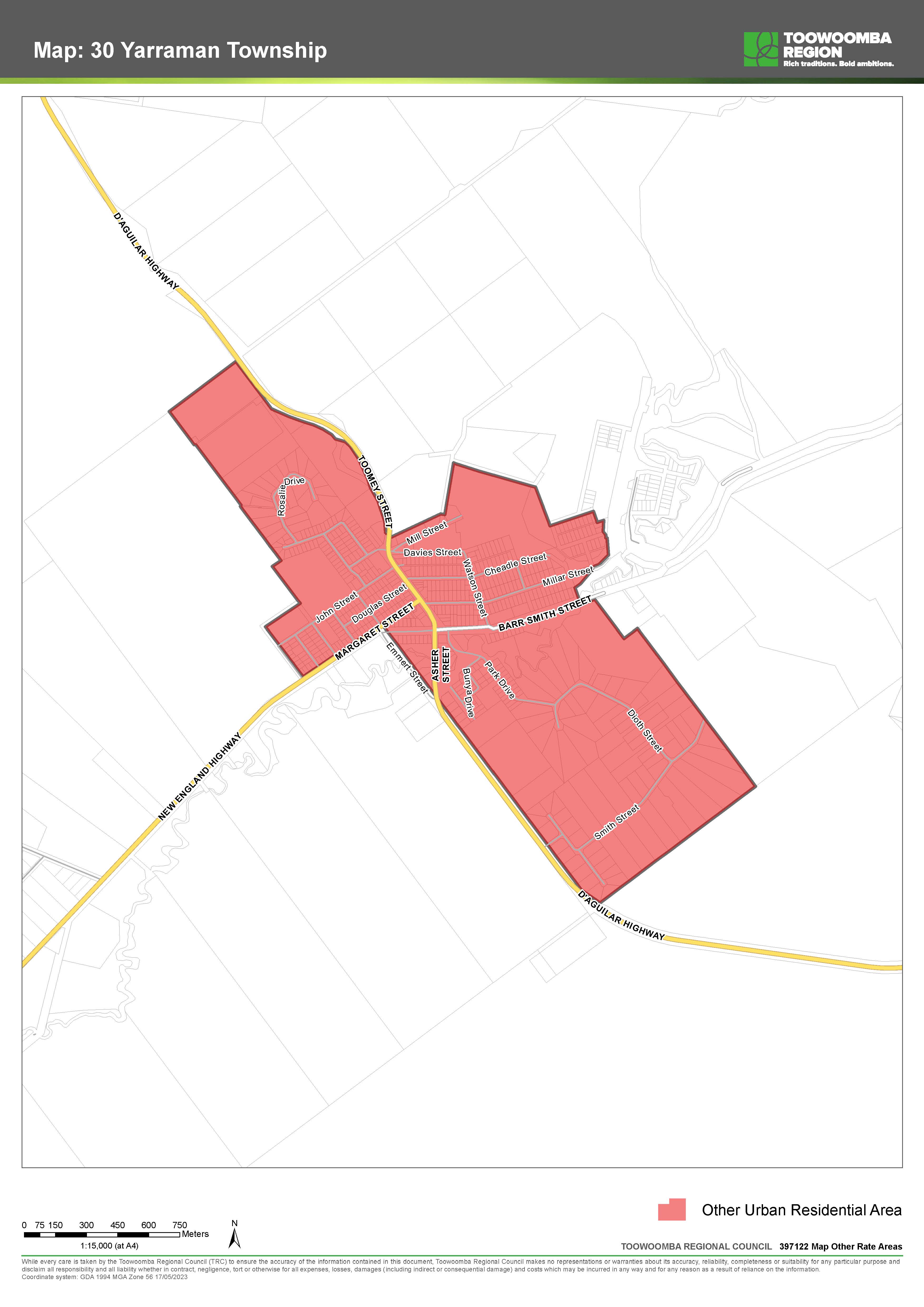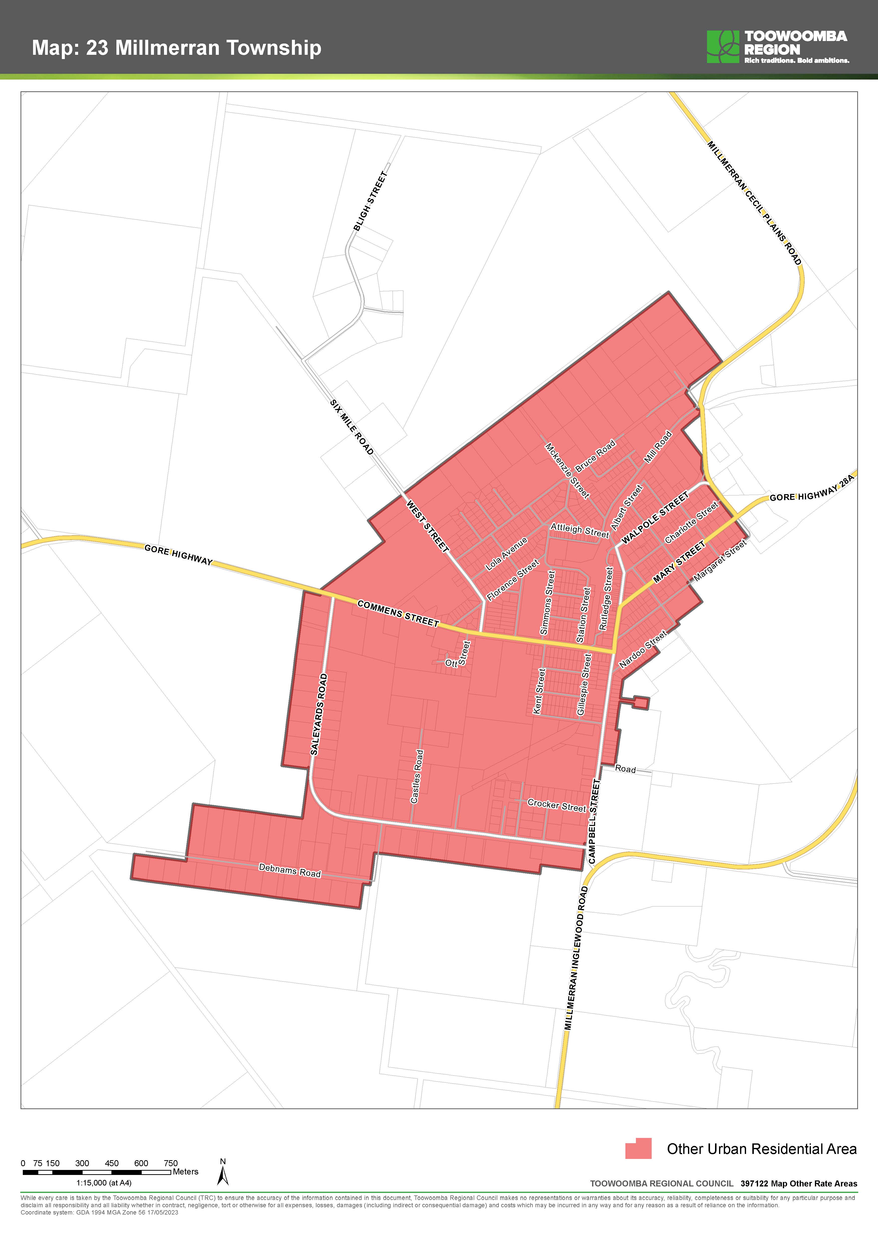 Category: 3.3 - Toowoomba Trade Gateway CommercialDescription: Land located within the localities identified on map no. 5, used, or capable of being used, for commercial purposes Identification: Land identified on map no. 5 having a land use code of 00,10,11,12,13,14,15,17,18,19,20, 21,22,23A,24,25,26,27,32,33,34,36A,38,41,42,43,44,45,46,47,48,49,51,52,55,56,57,58,59,91,92,95,96,97 or 99.